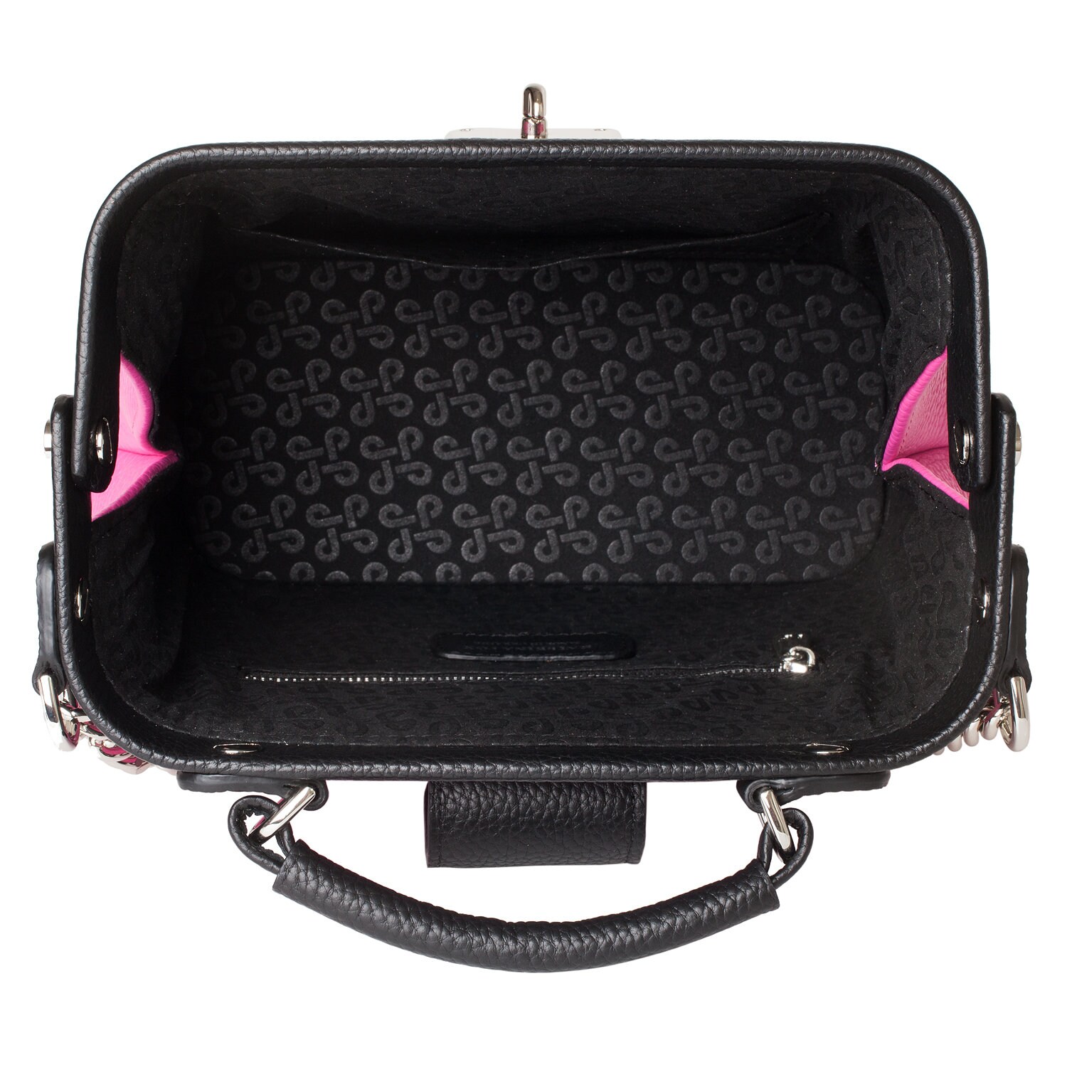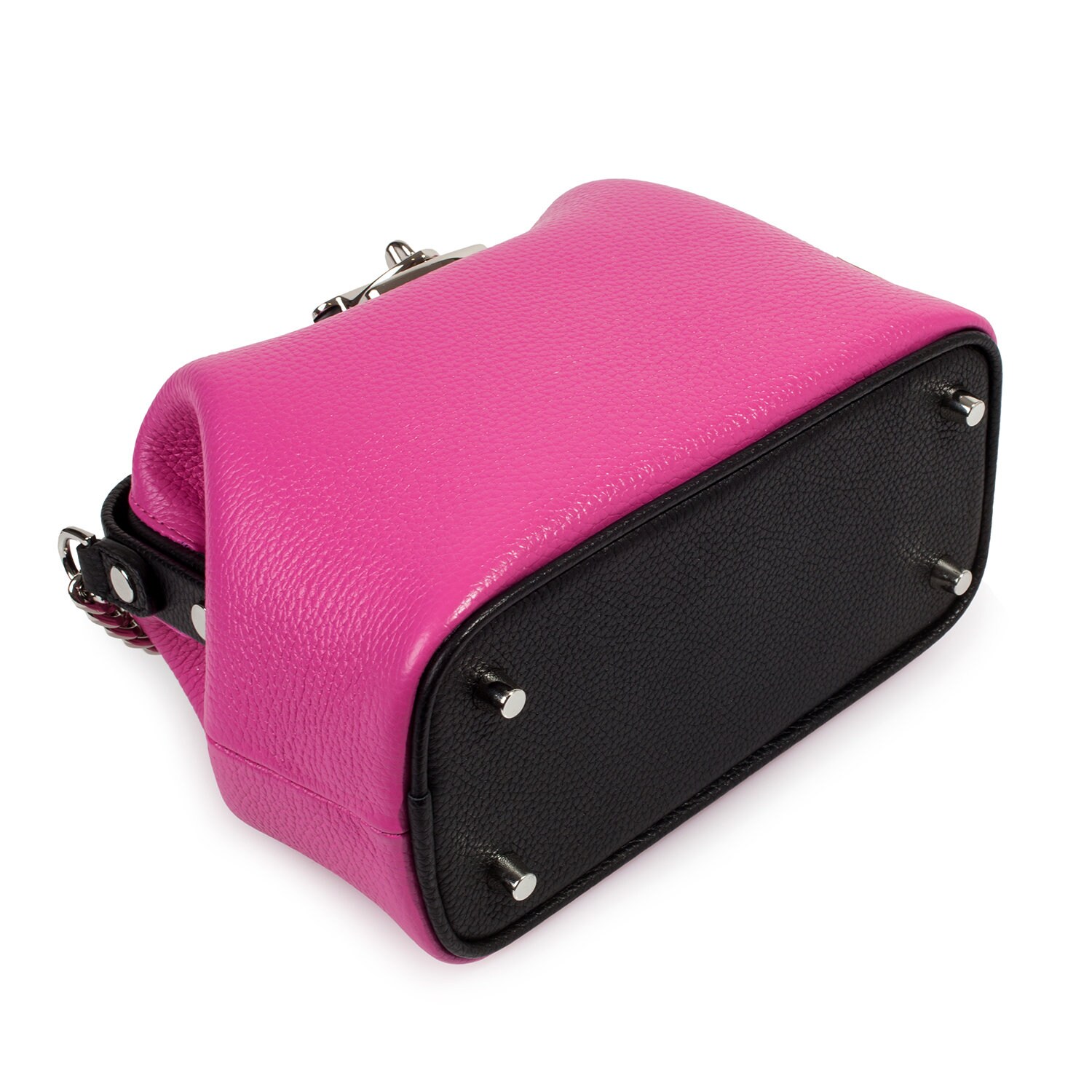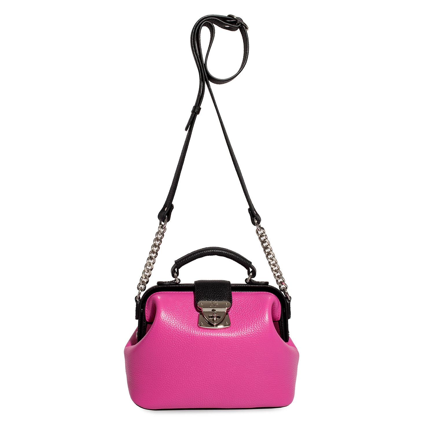 Women's leather doctor bag made of genuine leather, hardware with galvanic coating and microfiber lining. The internal space of a bag is equipped with one spacious compartment, one patch-pocket and one zipper pocket. The bag is closed with a clasp. The kit also includes a storage bag.