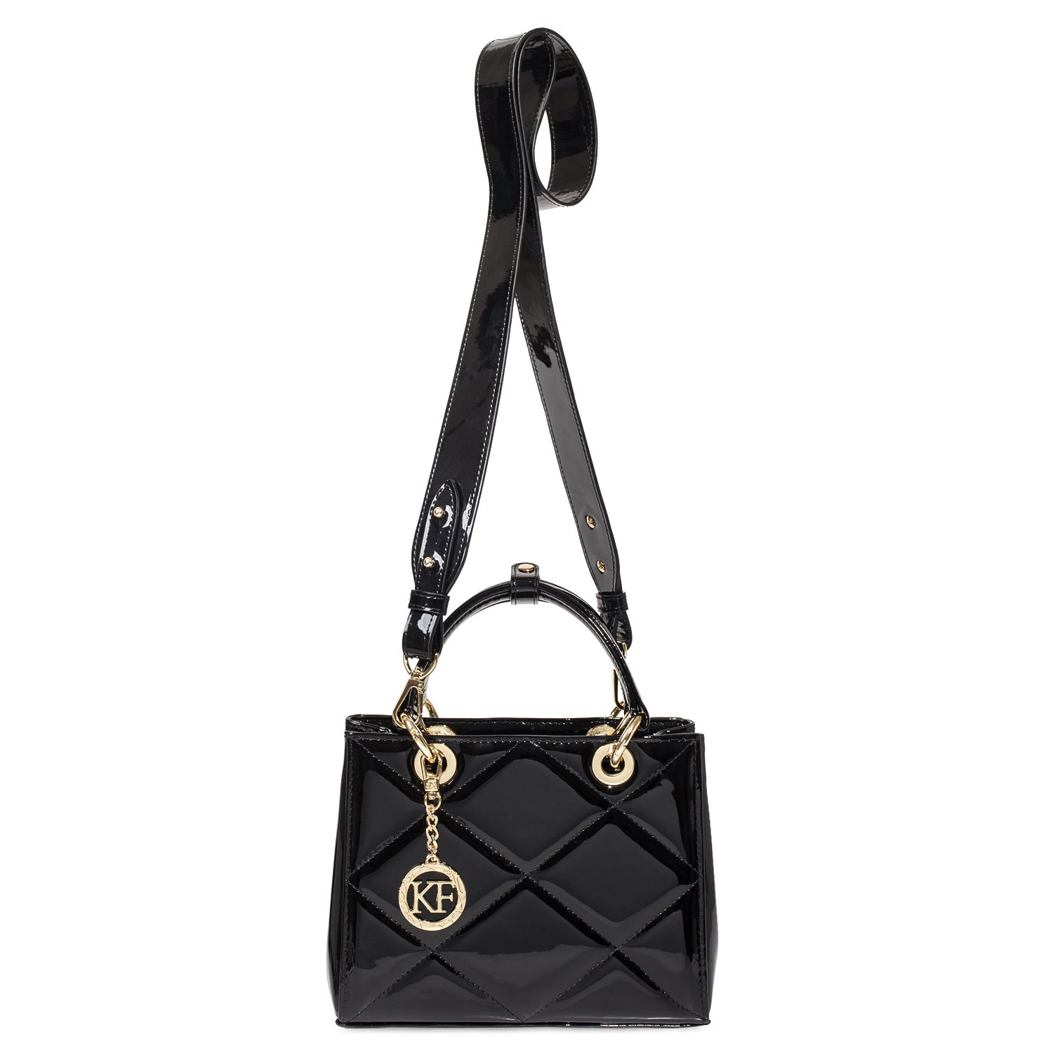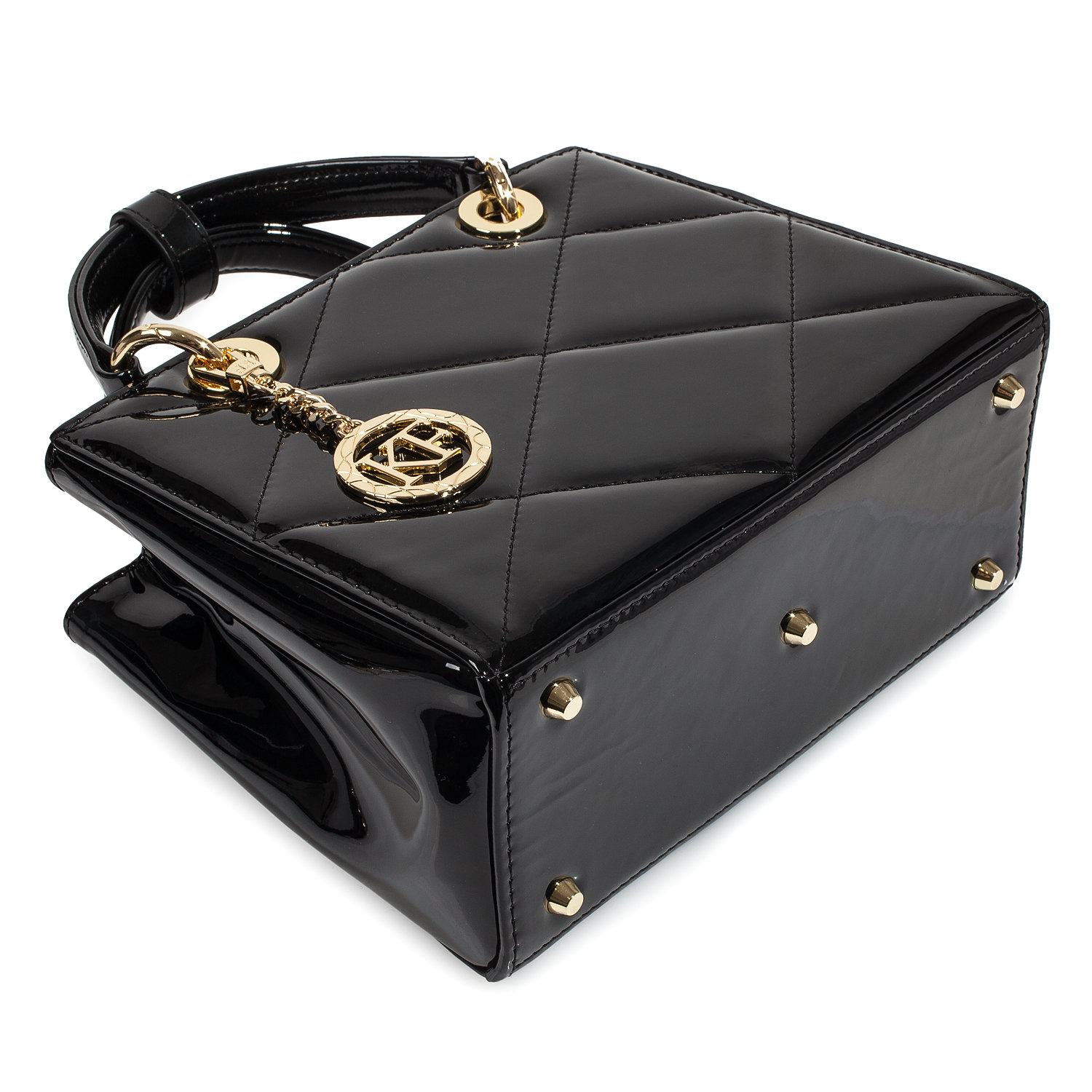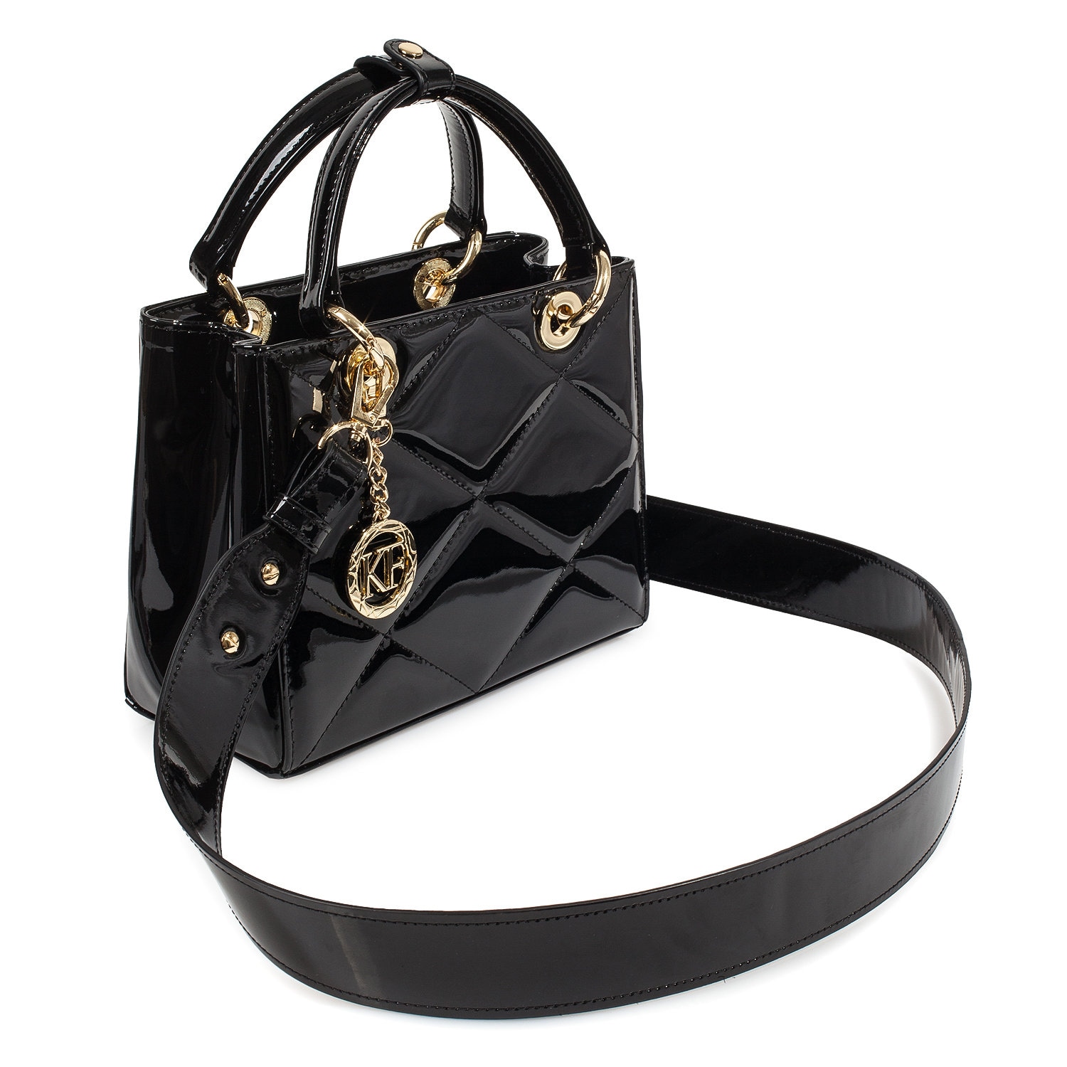 Leather Top Handle Bag, Black Patent Leather Handbag Top Handle, Women's Leather Bag KF-4486