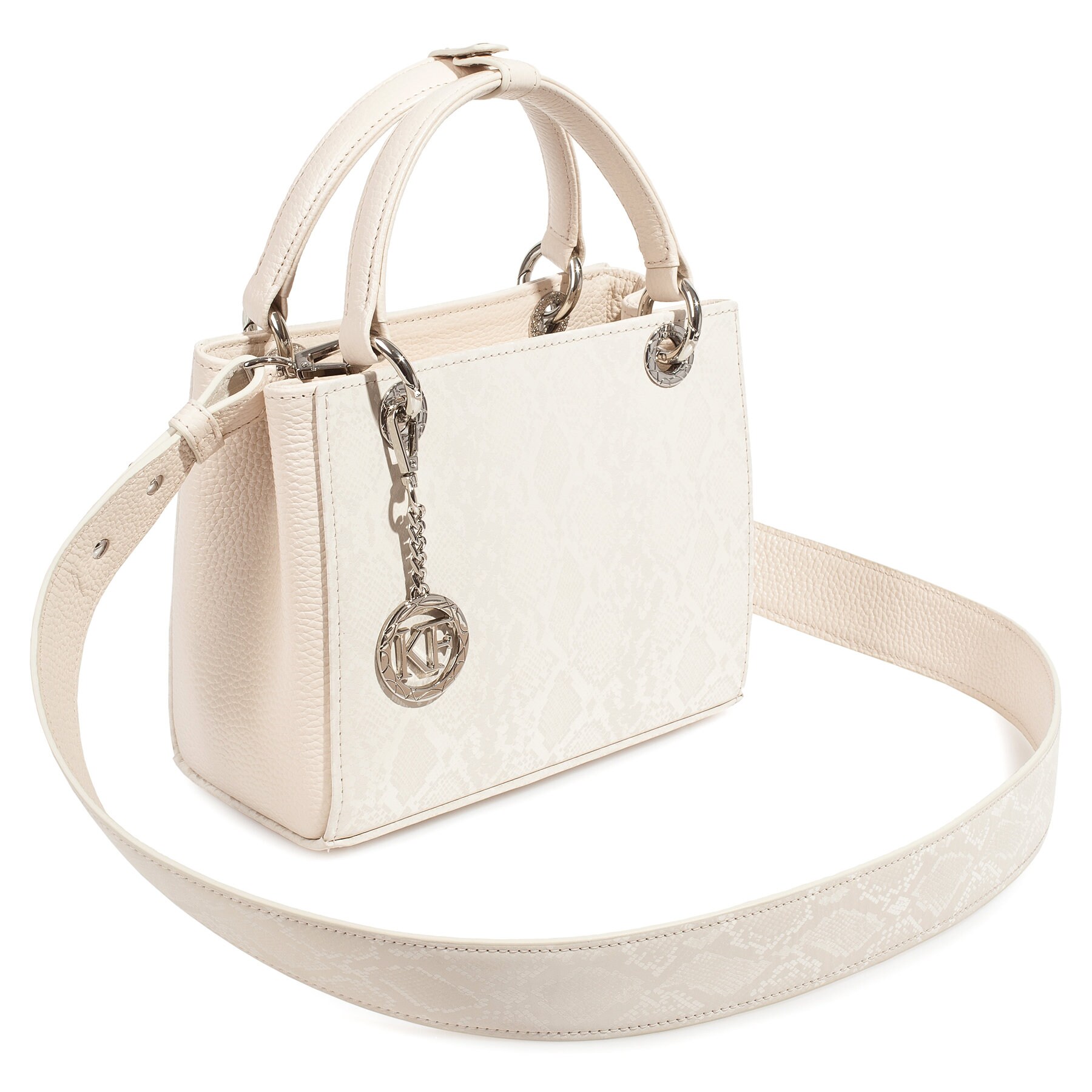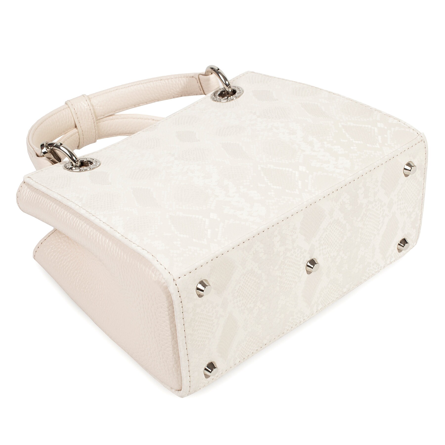 Delivery: In most cases, our goods are shipped by FedEx or Ups Express. On rare occasions, the goods might be shipped by Ukrposhta. The clients should check in advance an estimate of the amount of customs duty and value added tax. Light beige genuine leather handbag with snake print from Ukrainian designer Katerina Fox. This model is designed for women who appreciate the sleek design combined with functionality and comfort. High-quality and reliable hardware ensure long service bags. Inside the bag are three spacious compartments, one with zip, two patch pockets and one zippered pocket closes with a zipper. The bottom of the bag protected by metal feet.