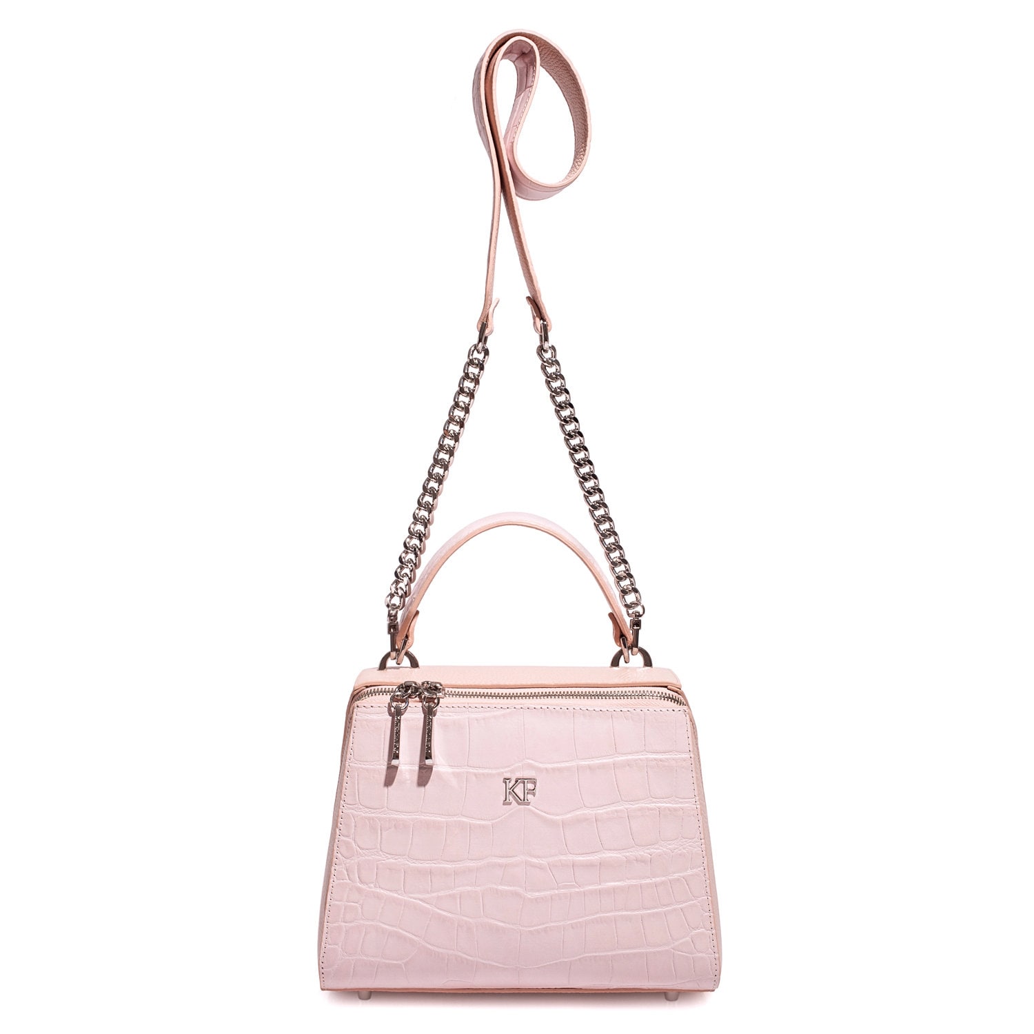 Leather Top Handle Bag, Light pink Leather Handbag Top Handle, Women's Leather Bag KF-3710